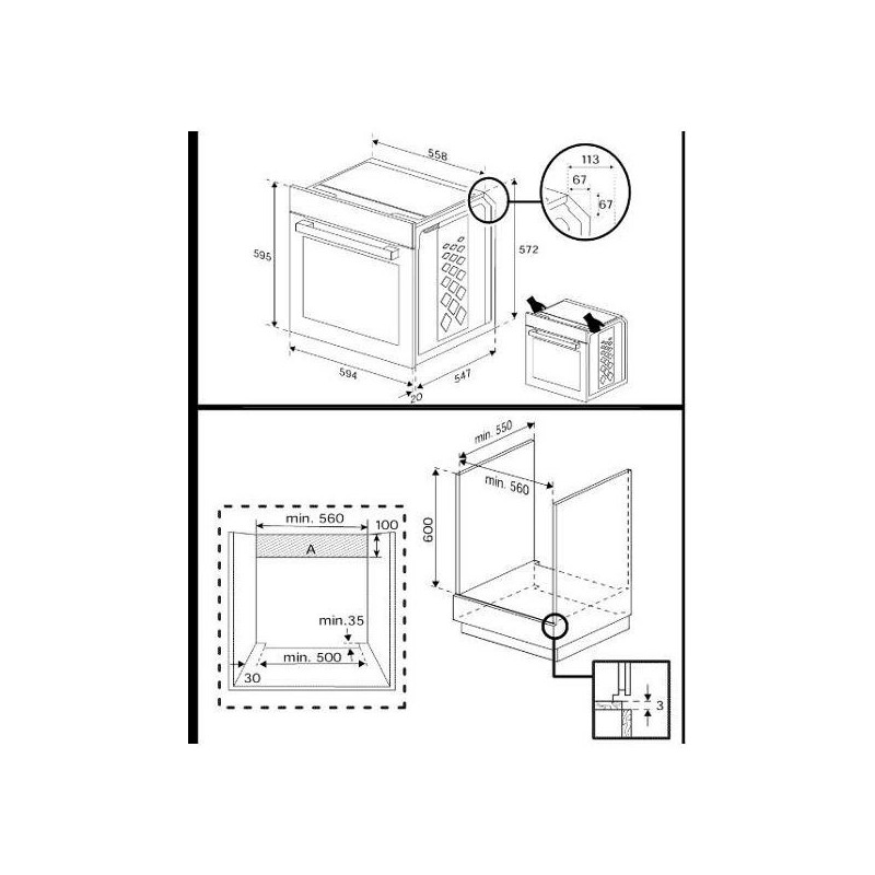 Габариты ниши для встраивания: 60х56х55 см