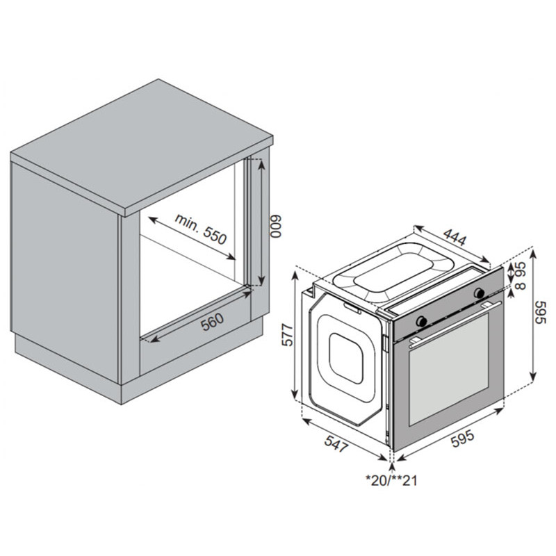 Габариты ниши для встраивания (ВхШхГ): 60x56x55 см