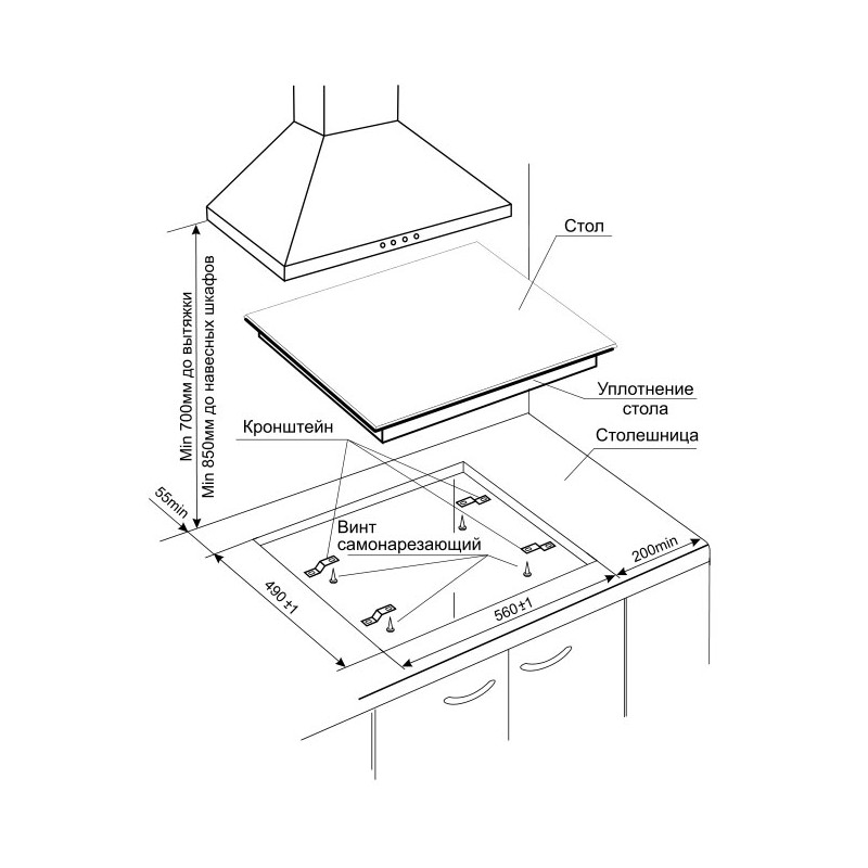 Габариты ниши для встраивания: -x56x49 см