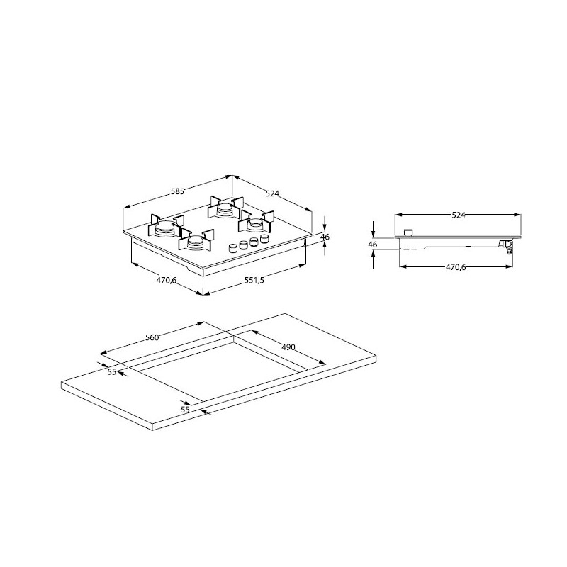 Количество конфорок: 4 газовые